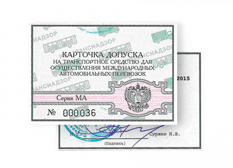 Вместе с удостоверением выдается карточка допуска МАП (карточка выдается на каждое транспортное средство).